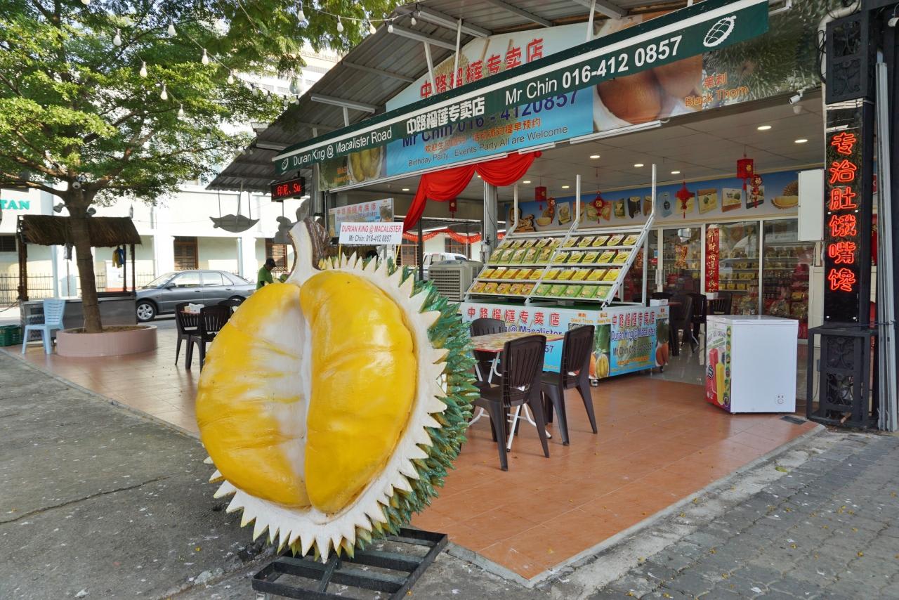 こちらはトゲトゲで暴力的な巨大オブジェを店先に置いているドリアン屋さん。