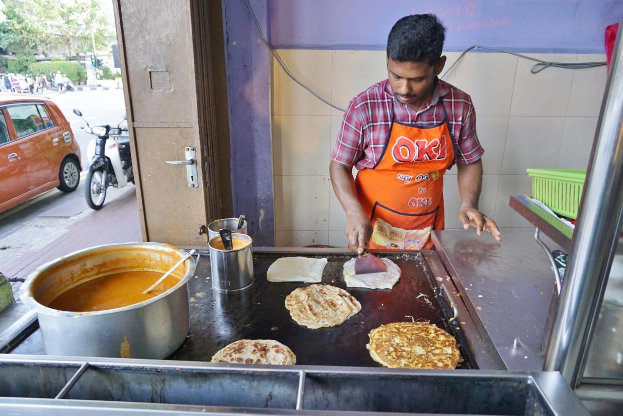 目的地に向かって歩いていると店先で手際よくロティを焼いていくお兄さんを発見。