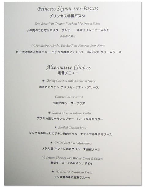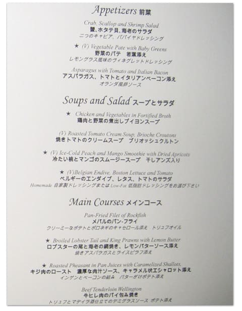 どこのレストランにも、この様な日本語メニューがあります