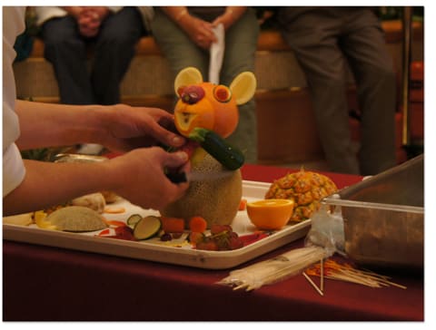 (これはアトリウムで行われていた果物と野菜で作る彫刻の実演です)