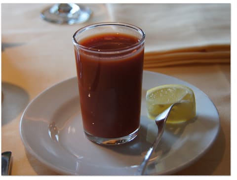 このトマトジュースは無料のものなのですが、濃厚でとっても美味♪