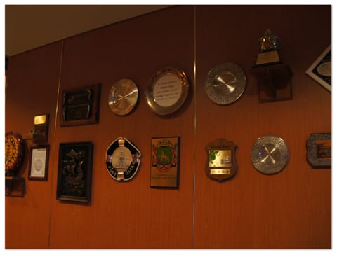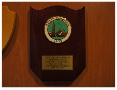 船内の壁には各国寄港地のメモリアル盾が飾られていました