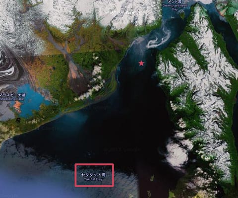 ヤクタットベイはアラスカ湾に南西に広がる湾で、幅が29kmもあるそうです