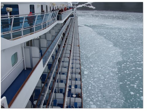 お値段の高い客室の方々は、バルコニーからゆったりと氷河鑑賞しています