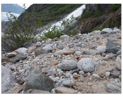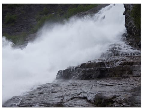 バスを降りてから、30分程かけて氷河と滝の近くまで歩きます