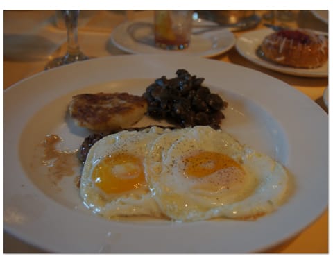目玉焼きの下には、なんとステーキがありました!(付け合せは何だったのか覚えていません^^;)