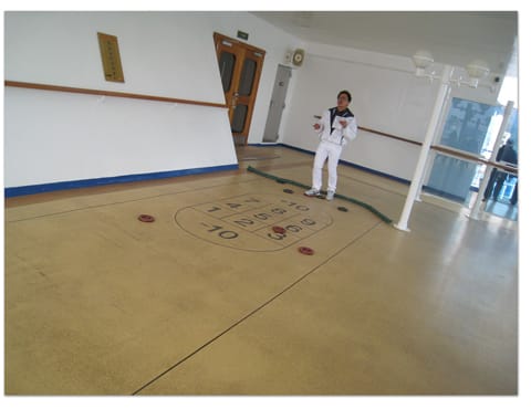 この後、デッキ16後方で行われる「シャッフルボード大会」に行ってみたのですが