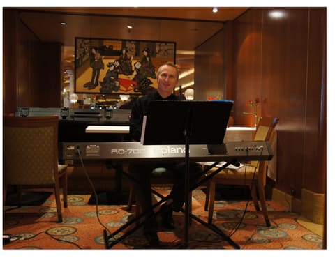 電子ピアノでの演奏ですが、おしゃべりを邪魔しない程度の静かなもので