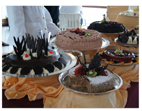 次々と目の前で作られていく美味しそうな料理(パスタやケーキ)ですが