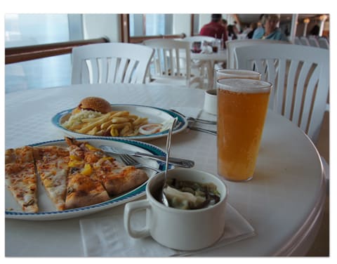 それから、船内食べつくし目標の残りの1つ「ピザ」を食べるためにデッキへ行きました