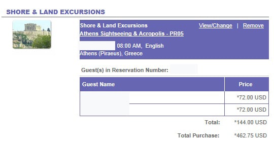 先ずはアテネでのエクスカーション(寄港地観光)の申込みです。