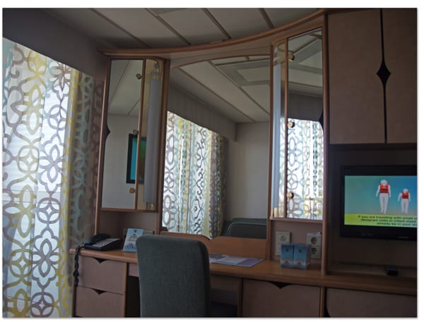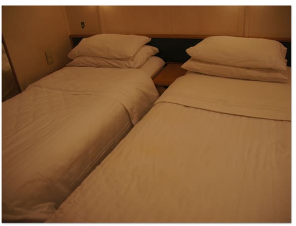 18㎡と狭くチープな内装ですが、やはりバルコニー付きキャビンは明るくて良いですネ。
