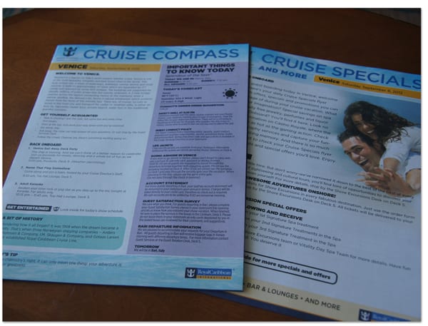 ドレッサーの上には、予約していたエクスカーションのチケットとクルーズコンパスが用意されていました。