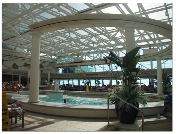 下船時刻まで4時間近くあったので、一旦キャビンへ戻り本を持ってプールデッキへ。
