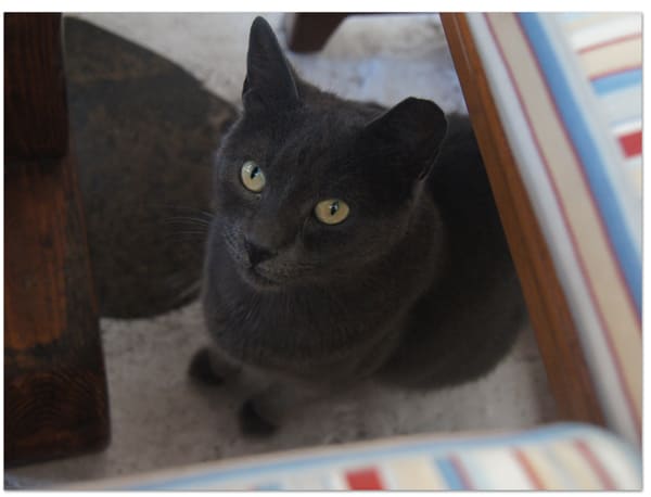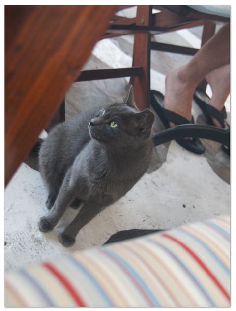 シーフードの匂いに釣られてテーブルの下までやって来たニャンコ♪