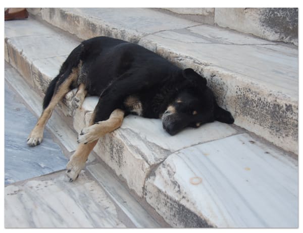 ん!? 混雑の原因は、階段通路のど真ん中で平然と寝ているコヤツか!?