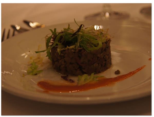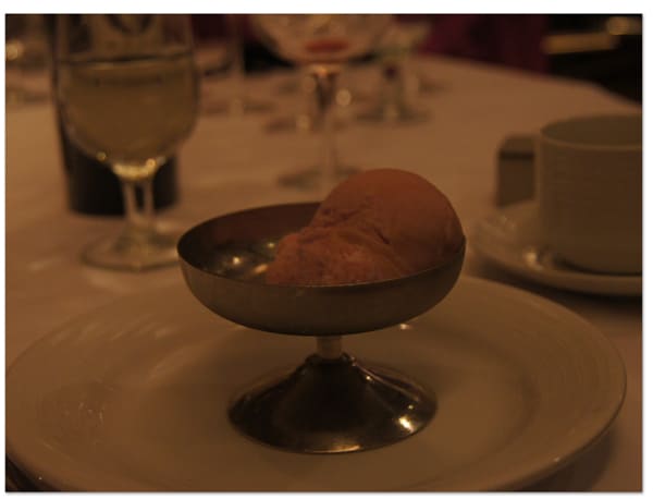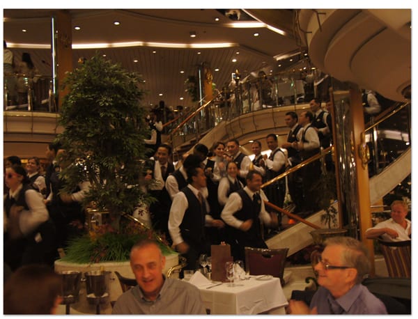 デザート前に突然音楽が鳴り響き、ナプキンを頭上で回しながらホールスタッフの登場です。