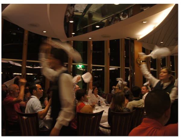 勿論私たちも一緒になってナプキンを回します♪ クルーズではお決まりの光景ですネ(笑)
