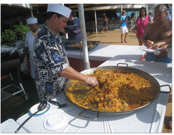 午後からはプールデッキで振舞われたパエリアを食べたり