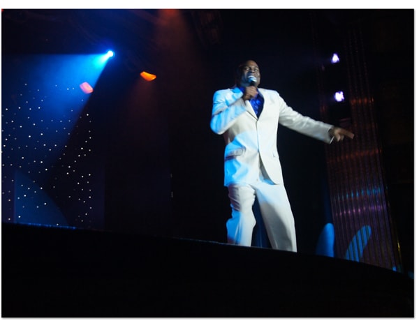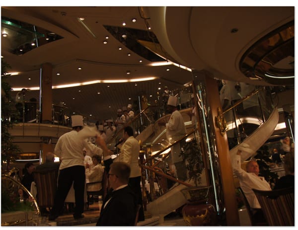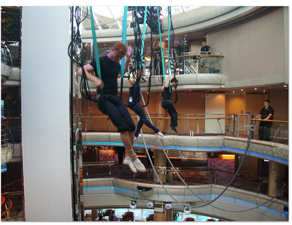 キャビンへ戻る途中、吹き抜けでショーのリハーサルが行なわれていました。