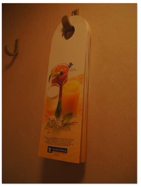 朝食の場合は、この用紙にチェックを入れてキャビンのドアノブに掛けておくと