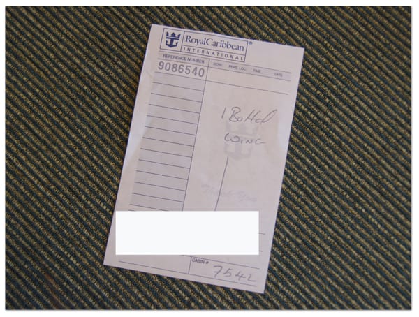 ※現物と引き換えに伝票を渡され、下船前日の夜キャビンまで届けてくれました。