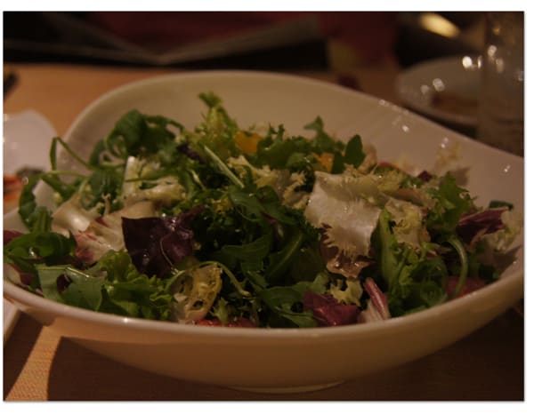 サラダを注文したら、大きなお皿に生野菜がドーンと盛られていました。