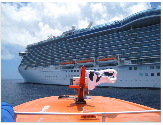 遠くに見えているのが、私たちの船・ロイヤル・プリンセスです。