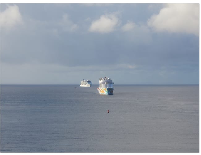 ロイヤル・プリンセスの後方に2隻のクルーズ船が見えました。