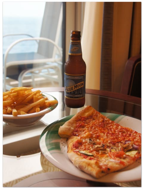 プレーゴ(デッキ16)からピザとビールを持ち込み、部屋飲みしたり・・・