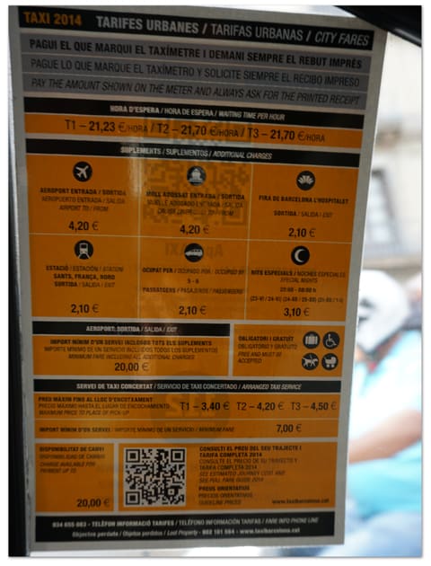 Suplemento(スプレメント)と呼ばれる追加料金表です。