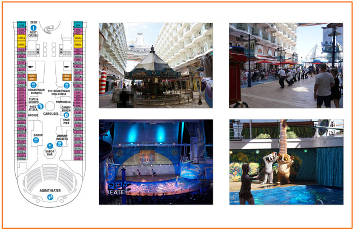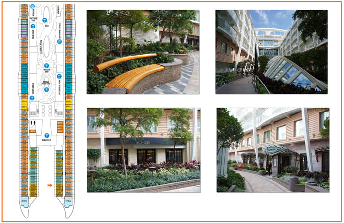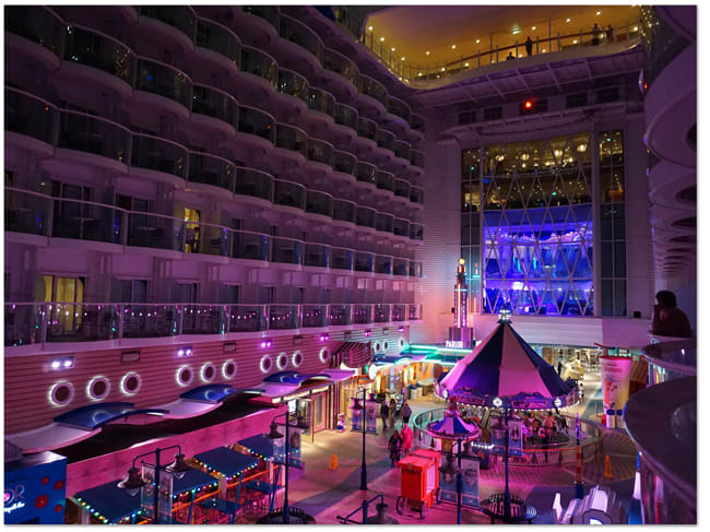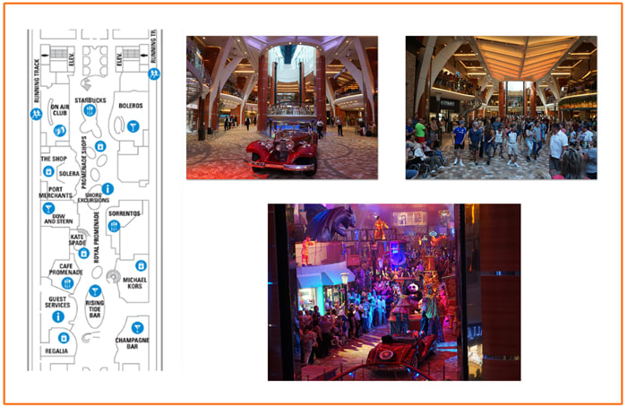 このフロアの特徴は、3デッキ吹き抜けの「ロイヤル・プロムナード」