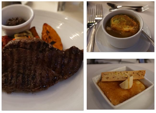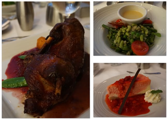 夕食はメインに鴨のローストを頼んだら、巨大な塊が出てきてビックリ。