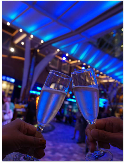 デッキ5のロイヤル・プロムナードでシャンパンを頂きました♪