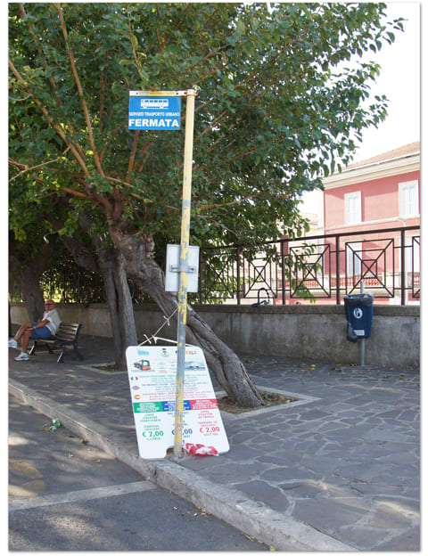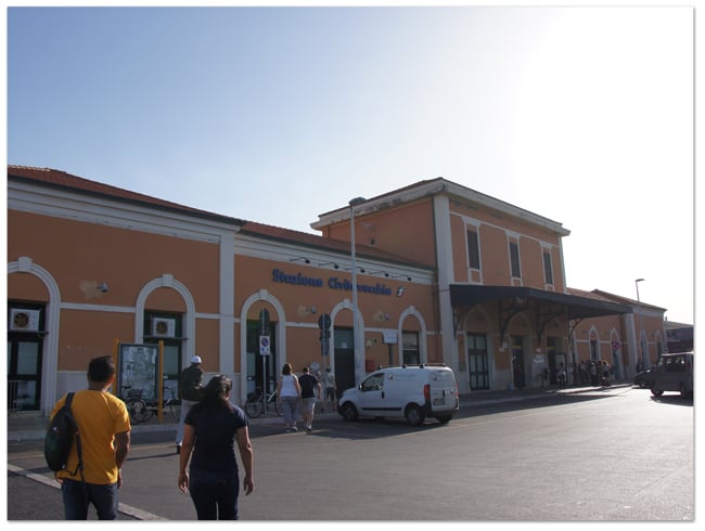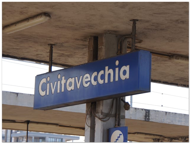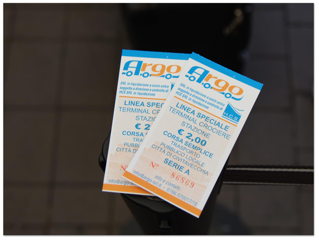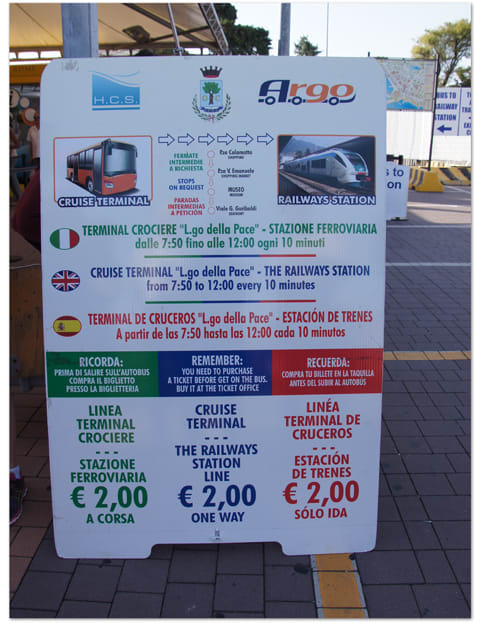 港からチベタベッキア駅までは、民間のバスを利用します。