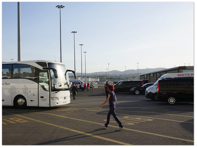 クルーズターミナルから港入り口までは無料のシャトルバスで移動。
