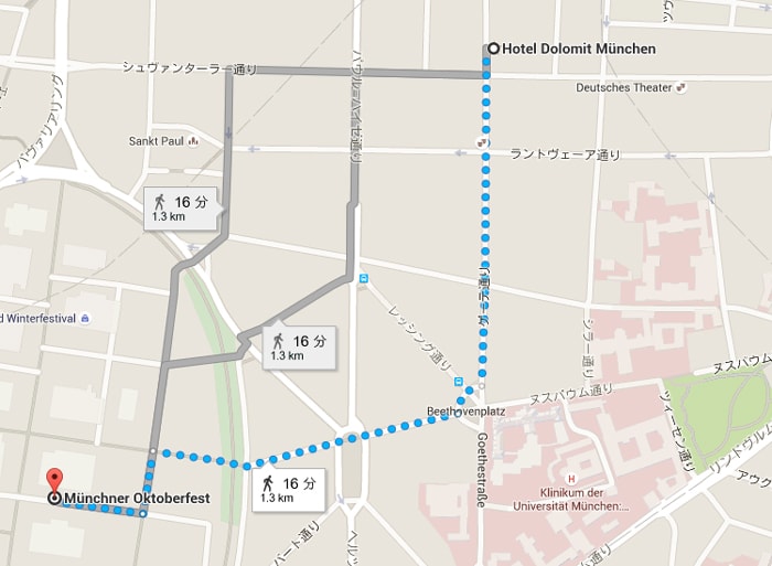 オクトバーフェスト会場へも徒歩圏内にあるホテル「Hotel Dolomit」