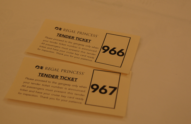 指定されたダイニングへ テンダーボートのチケットを貰いに行き