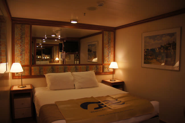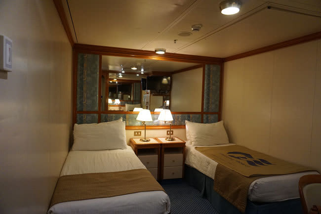 この写真は、アラスカクルーズ時の内側キャビンです。