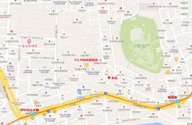 本店とY's PARK直営店との位置関係はこんな感じ。