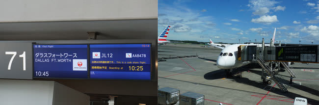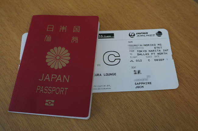成田からダラスまでは、特典航空券のビジネスクラスです。