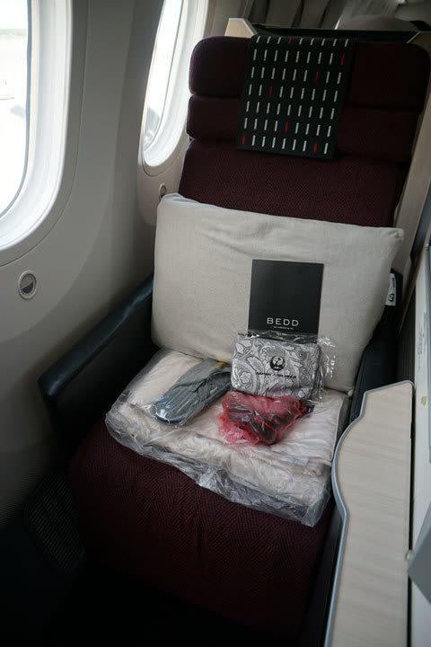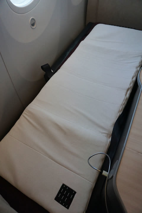 長距離飛行のため、マットレスも敷いて寛ぎモードに◎