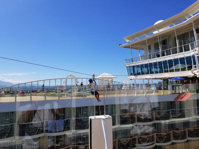 船内では無料のジップラインを楽しんでいる人がいましたが