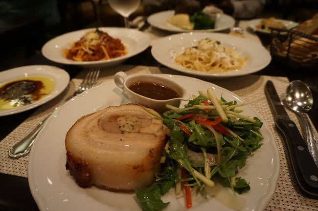 夜食はダイニングパッケージで予約しておいたイタリアンレストラン