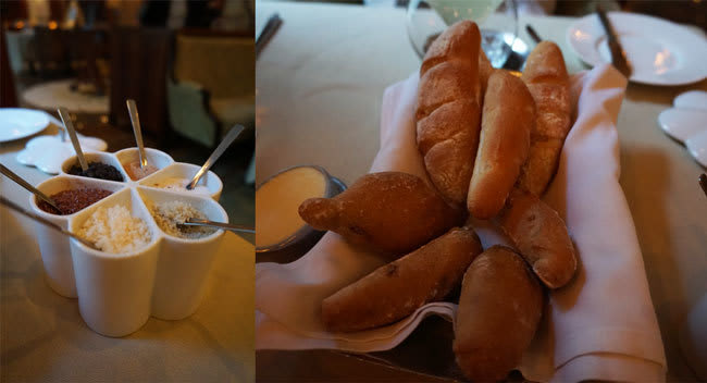 パンはバターを塗り、塩で頂くスタイルです。