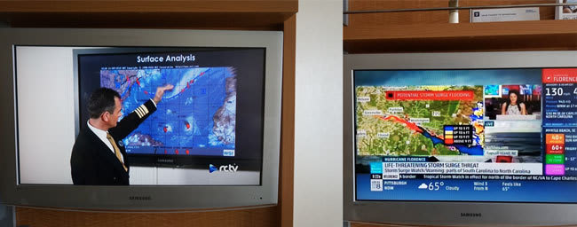 慌ててキャビンに戻ると、ハリケーン報道が流れていました。