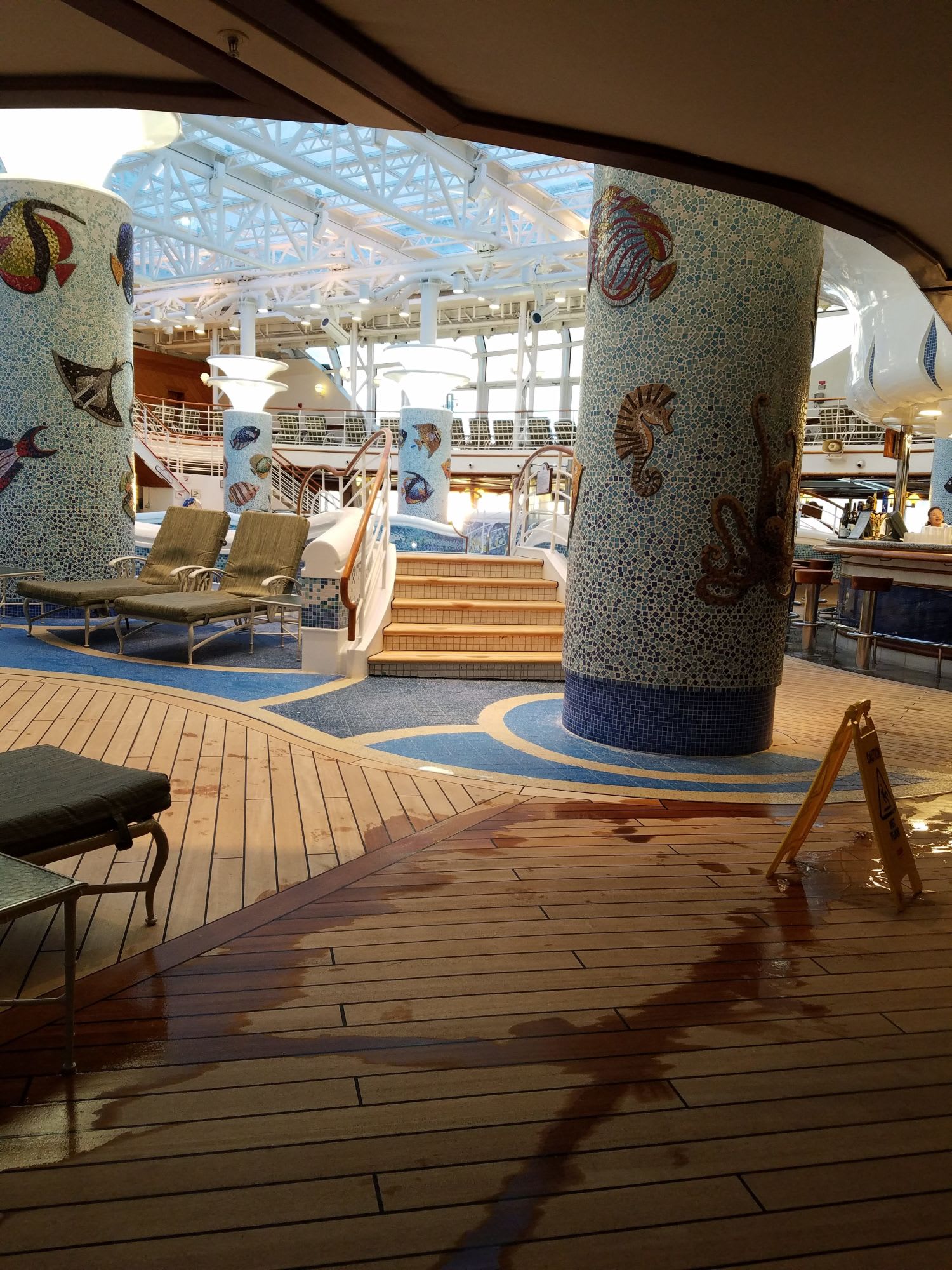 外国からの乗客は 結構寒くても朝からジャグジーにはいったり、泳いだりしています。