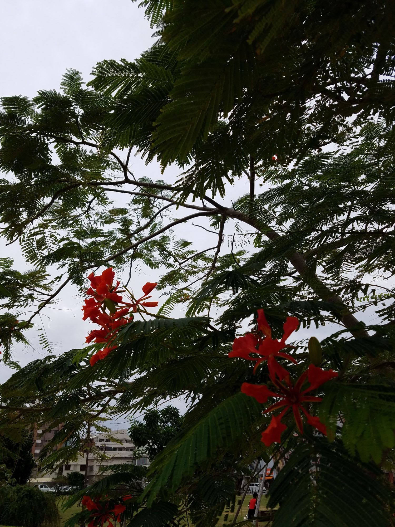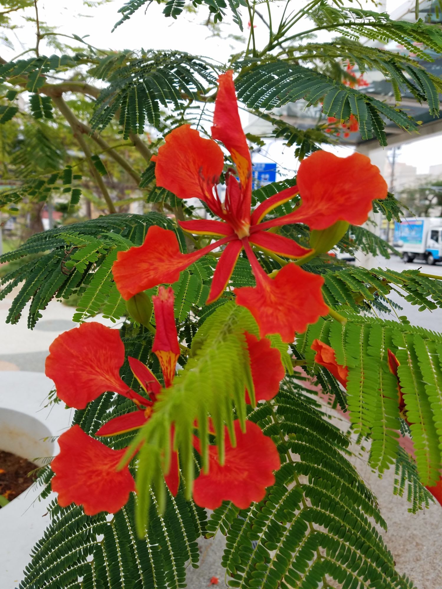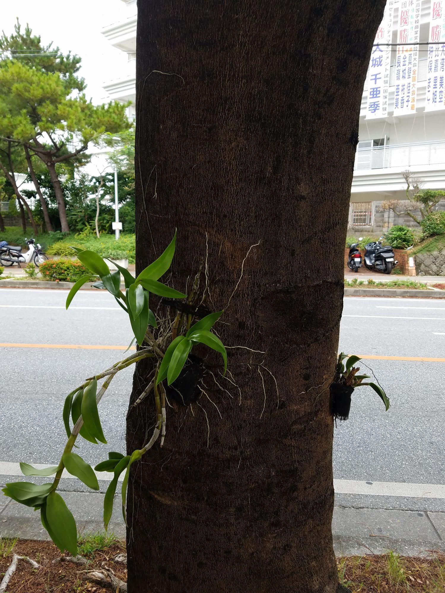歩道の並木にランが植えてあるのも沖縄ならではです。