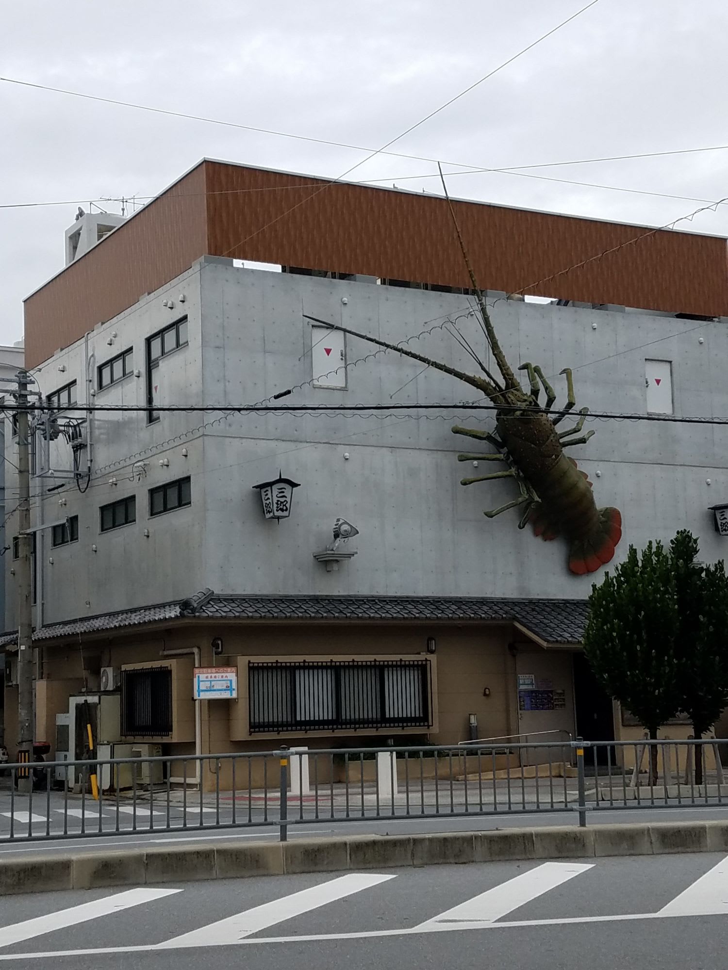 お店の飾りも大胆。でもこのエビはかに道楽と違って動きません。