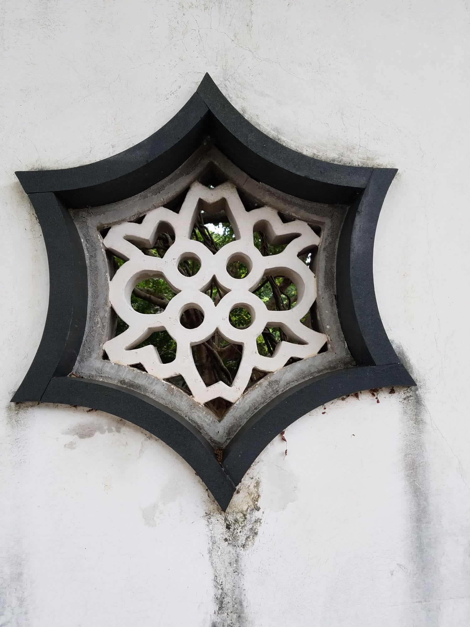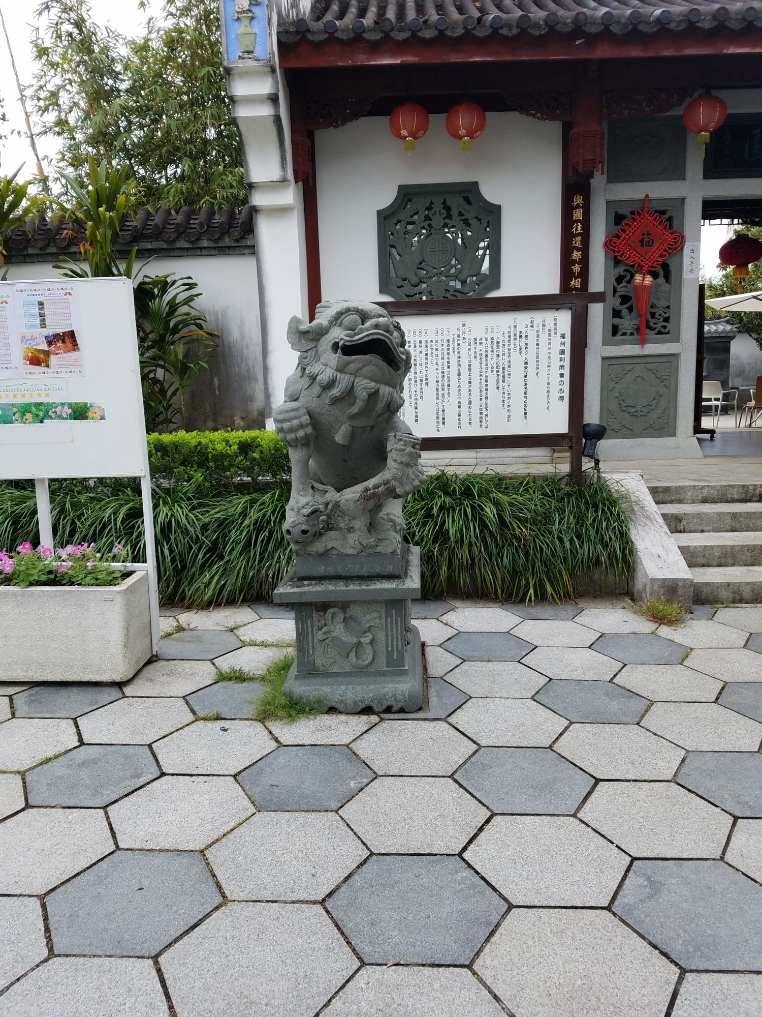 福州園の 狛犬ともシーサーともわからない、門の守りも気に入りです。